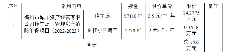 衢州市城市資產(chǎn)經(jīng)營有限公司停車場、管理房產(chǎn)消防維保項目(2022-2023)采購公告