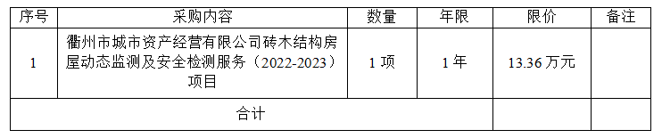一、項(xiàng)目名稱:衢州市城市資產(chǎn)經(jīng)營(yíng)有限公司磚木結(jié)構(gòu)房屋動(dòng)態(tài)監(jiān)測(cè)及安全檢測(cè)服務(wù)(2022-2023)項(xiàng)目