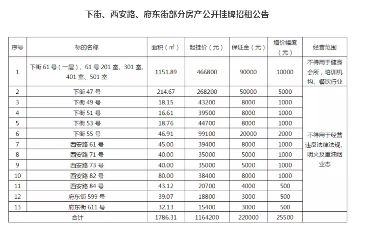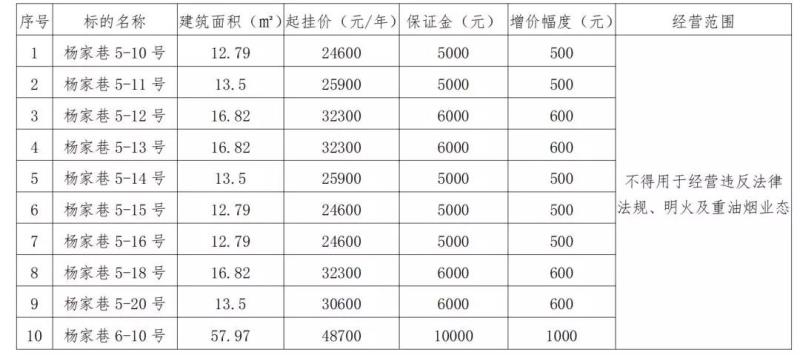 2.以上標(biāo)的租賃期限均為5年;上述標(biāo)的首年租金按成交價,從第二年起在上年租金基礎(chǔ)上遞增3%。