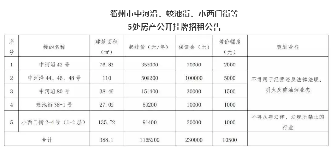 2.以上標(biāo)的租賃期限均為5年;首年租金按成交價,從第二年起在上年租金基礎(chǔ)上遞增3%。