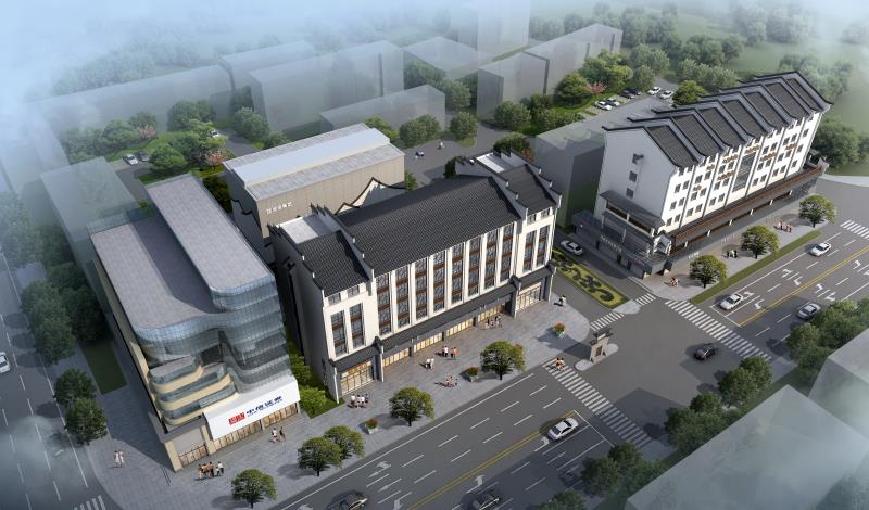商業(yè)樓整體風(fēng)格從傳統(tǒng)徽派建筑風(fēng)格演化而來,借鑒傳統(tǒng)徽派建筑的馬頭墻形式作為設(shè)計的手法及元素。