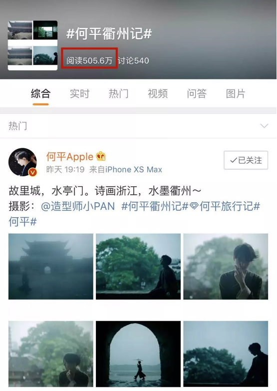 這是昨晚7時(shí)17分,衢籍跨界設(shè)計(jì)師、藝術(shù)插畫師何平在新浪微博開設(shè)的話題#何平衢州記#,其中第一條微博(鏈接:https://m.weibo.cn/status/4385338128809500),何平就放了9張他在網(wǎng)紅景區(qū)水亭門拍攝的大片。