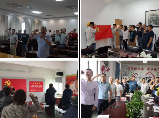 水業(yè)集團(tuán)行政支部、供水營業(yè)分公司支部、排水支部、污水廠支部、水廠支部、衢化水廠支部、工程公司支部開展全體黨員佩戴黨徽,重溫入黨誓詞、集中學(xué)習(xí)黨課、赴結(jié)對社區(qū)服務(wù)等系列黨員活動(dòng)。