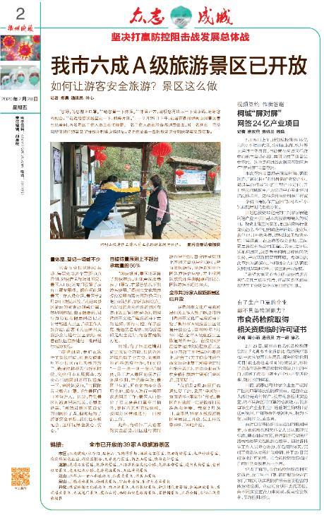 2月28日,衢州晚報(bào)第02版報(bào)道了爛柯山景區(qū)復(fù)工情況。