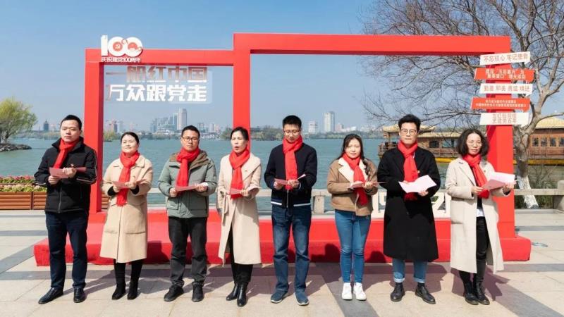 瞻“紅船”、溫誓詞、誦經(jīng)典、唱紅歌、作宣講。在南湖邊,全體黨員滿懷崇敬之心,瞻仰中共“一大”紀(jì)念紅船,在講解員的帶領(lǐng)下,睹物思人品史,回顧建黨百年來波瀾壯闊的偉大歷程,切身體會(huì)“紅船精神”。在紅船旁,全體黨員面向黨旗,右手握拳,莊嚴(yán)宣誓,重溫入黨誓詞,接受了一次深刻的黨性教育和精神洗禮。