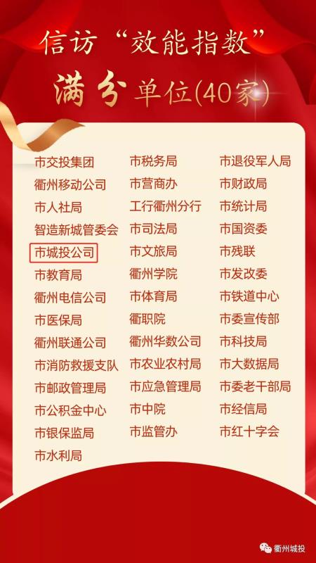 城投紅榜 | 集團(tuán)獲評第二季度信訪“效能指數(shù)”滿分單位