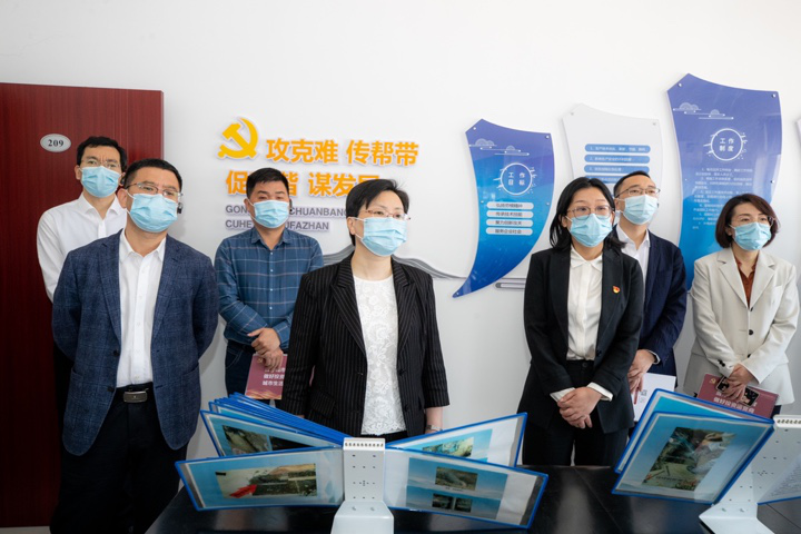 5月18日,全市“紅色根脈強(qiáng)基工程”賽馬比評現(xiàn)場會召開,市城投集團(tuán)作為市國資委推選的黨建示范單位參與比拼。當(dāng)天上午,市委常委、組織部長陳玲芳率隊(duì)到市城投集團(tuán)供水營業(yè)黨支部黨建陣地考察指導(dǎo)“紅色先鋒”黨建品牌建設(shè)工作。
