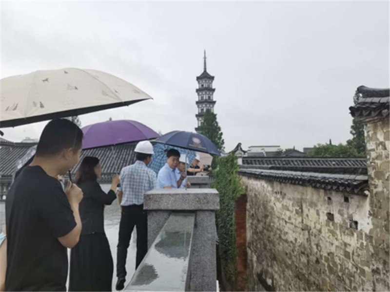 在水亭門(mén)歷史文化街區(qū),檢查組對(duì)在建項(xiàng)目、裝修商鋪以及江水上漲后的水亭門(mén)外廣場(chǎng)親水平臺(tái)進(jìn)行了逐一檢查。保證項(xiàng)目施工安全,確保裝修臨時(shí)用電雨季安全,加強(qiáng)安保巡邏。